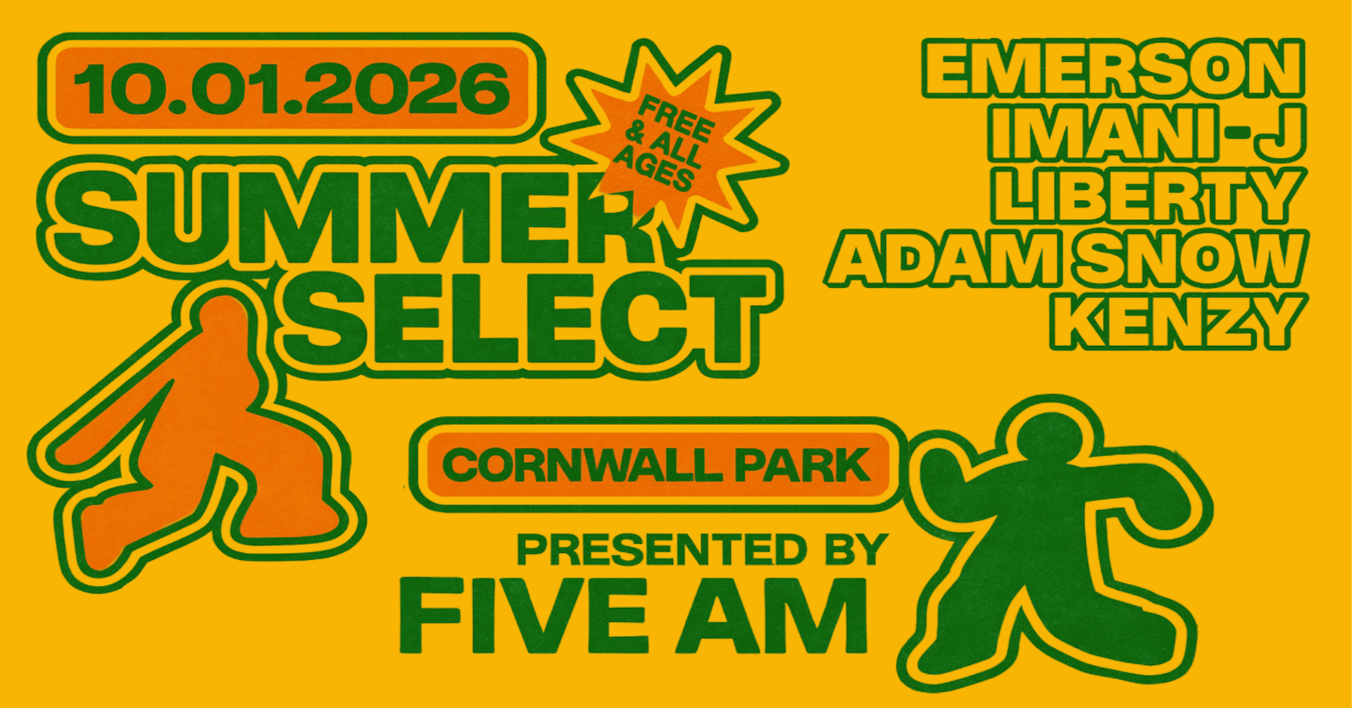 Summer Select is a free, all-ages community music event at Cornwall Park presented by FIVE 5AM. Featuring rising kiwi artists Emerson, Liberty, Imani-J, Adam Snow and KENZY.